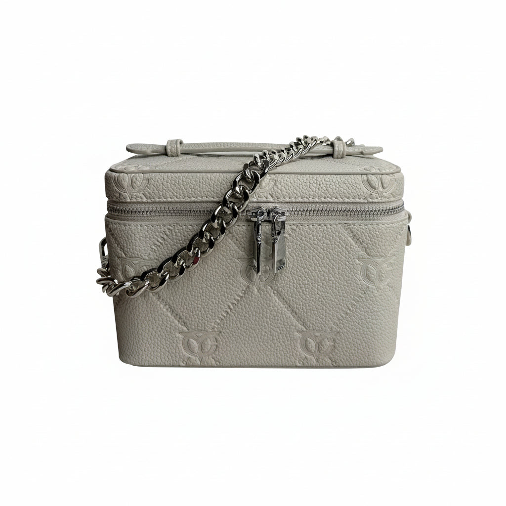 Designed for elegance in motion. With its signature texture and luxe chain detail, the Amara Vanity keeps your essentials beautifully organized at home or on the go! -